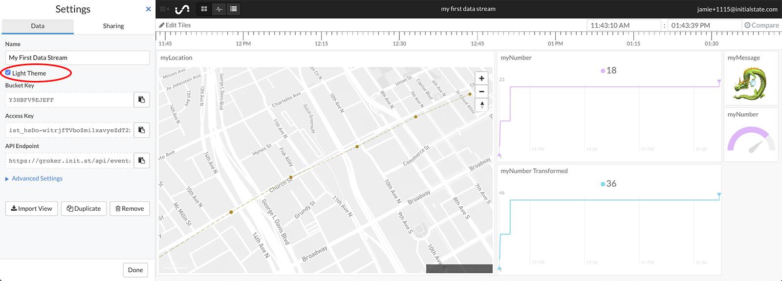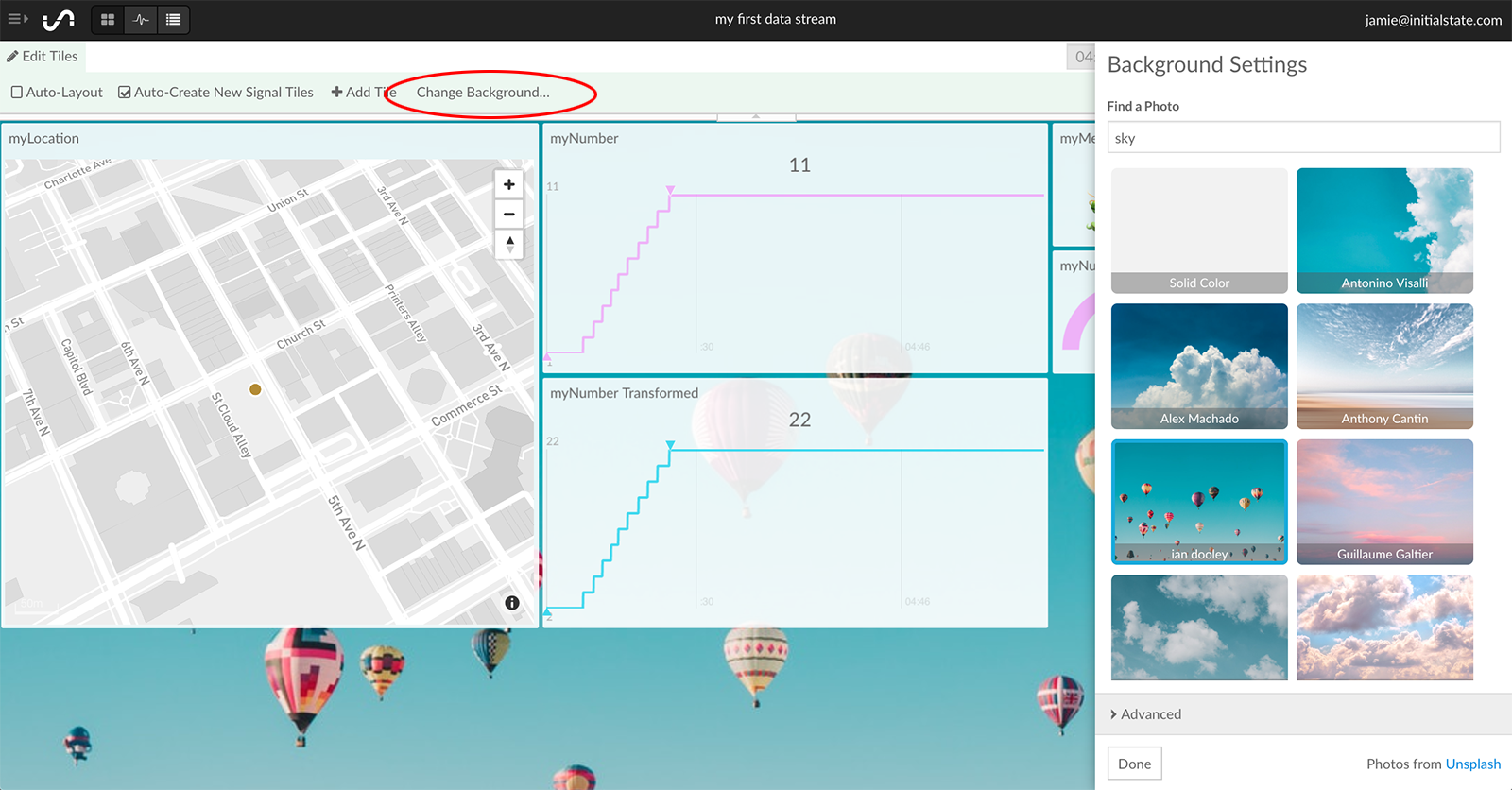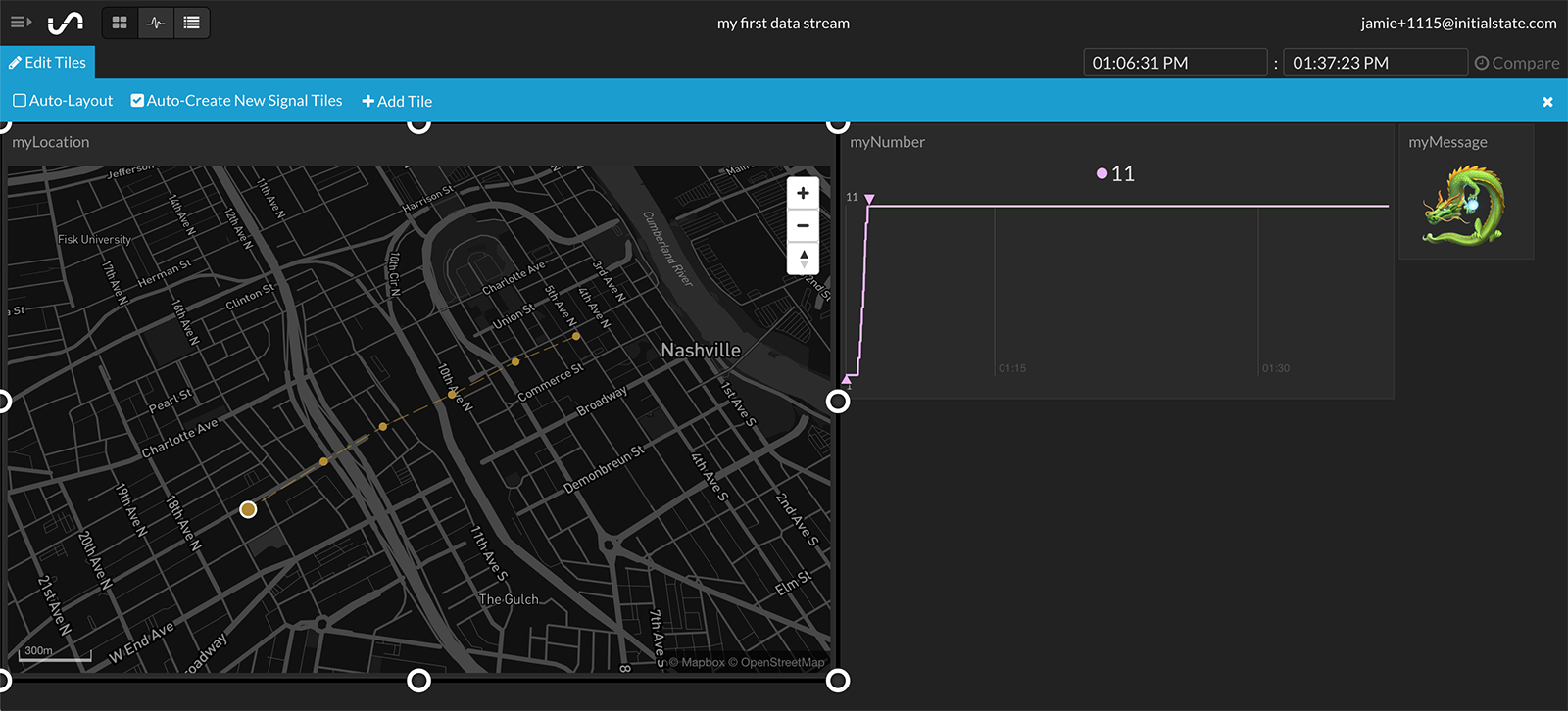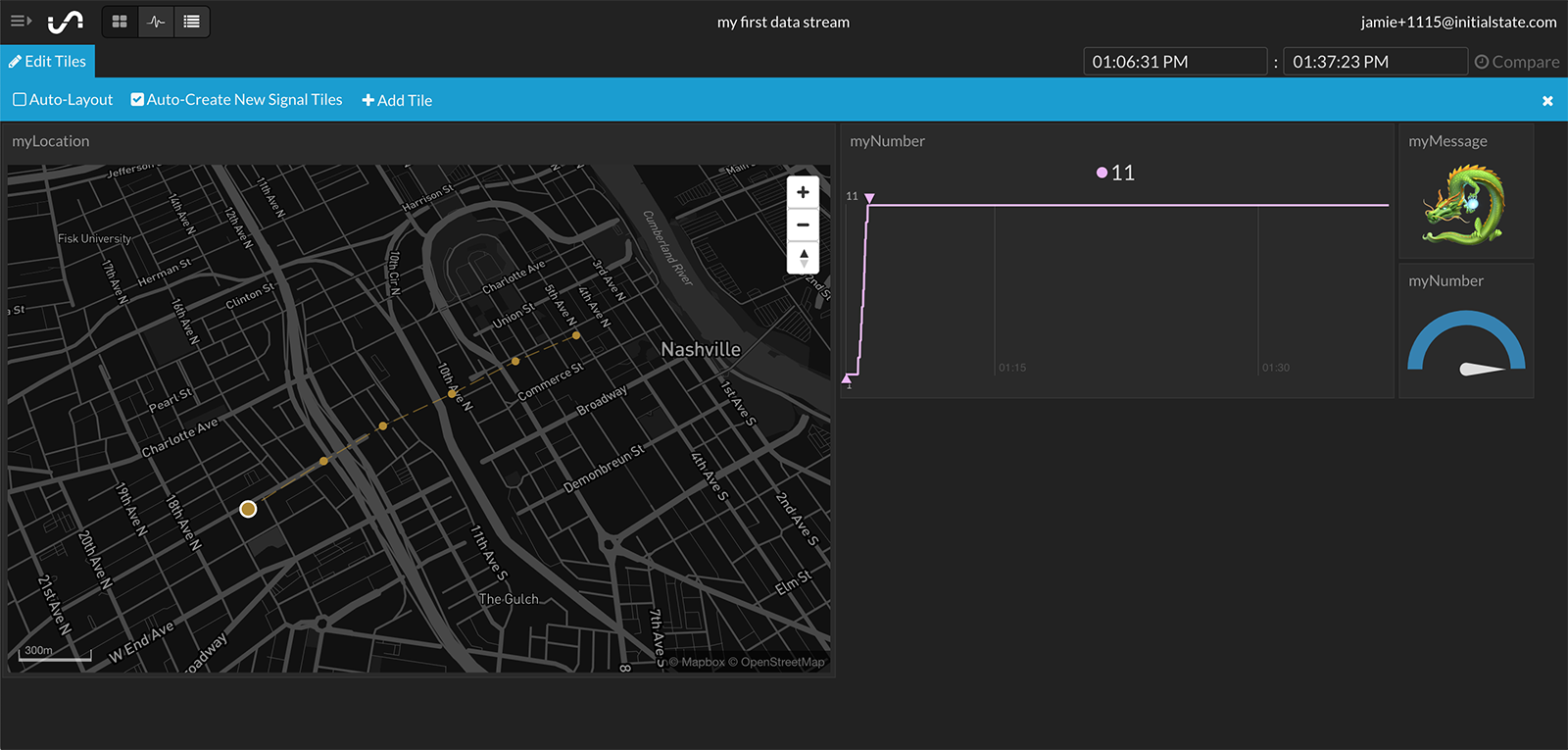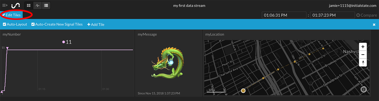 A Tiles dashboard layout was automatically created for your new data bucket, but chances are you will want to customize your dashboard to your liking. A dashboard editor is built right into the Tiles web application. Let's customize because it is super easy.