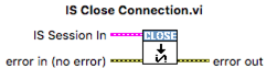 Simple close VI for closing the IS connection. The primary job of this VI is to close the HTTP connection which releases some previously reserved memory.